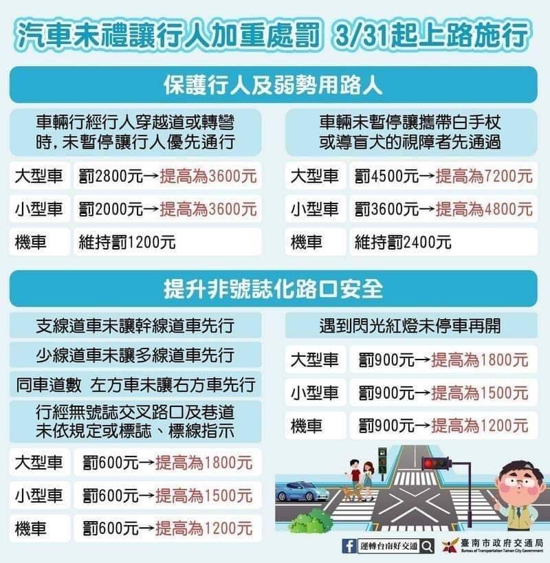 汽車未禮讓行人加重處罰 3/31起上路實施